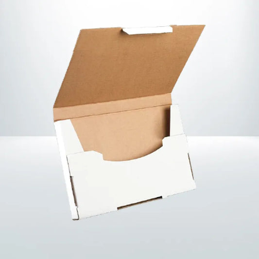 The main body of the boxes is made from single-layer cardboard of lightweight construction while the finish is a completely white, top-notch surface suitable for branding, printing, or decorating purposes. You can write directly on them or attach an address label to a courier for sending via a courier service. Moreover, one of the notable features of these flat boxes is the integrated self-locking tab for securely enclosing the items. They remain in shape and they will not be bent or rolled. For a tamper-proof solution, you can use our corrugated paper roll as well.